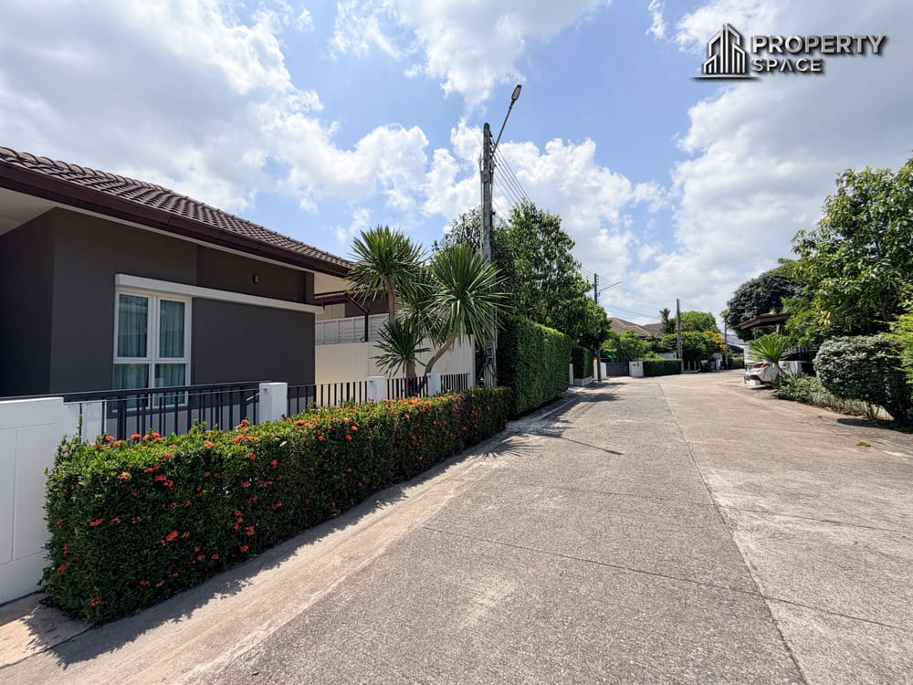 The village benefits from a location with numerous local shops and businesses along the main Huay Yai road, providing easy access to day-to-day items. Additionally, there is a diverse selection of Thai and western restaurants, as well as sports bars with private gardens for children to play safely. At the far eastern end of Huay Yai, residents can conveniently access the latest segment of the Bangkok/Pattaya Motorway (No 7), along with Highway 36 & 331.