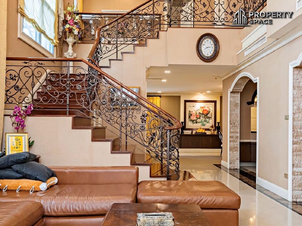 🏡This spacious European-style pool villa features 4 bedrooms, 5 bathrooms, and 2 living rooms, offering approx. 500 sq.m of living space on a generous 670 sq.m land plot. Designed for upscale family living, the home combines timeless elegance with generous proportions and excellent privacy.